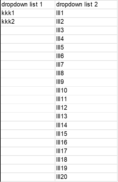 I want when I choose from the drop -down list 1 the name kkk1 only the names kkk1, lll2, lll3, lll4, lll, lll6, lll7, lll8, lll9, lll10 (or other combinations) appear . Can anyone help me?