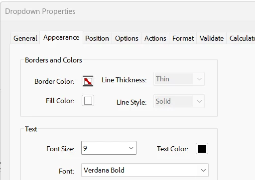 Hi, I am using Adobe Acrobat DC with the latest updates on Windows 11 Enterprise and looks like it has a bug as the dropdown list can not display Verdana Bold font.