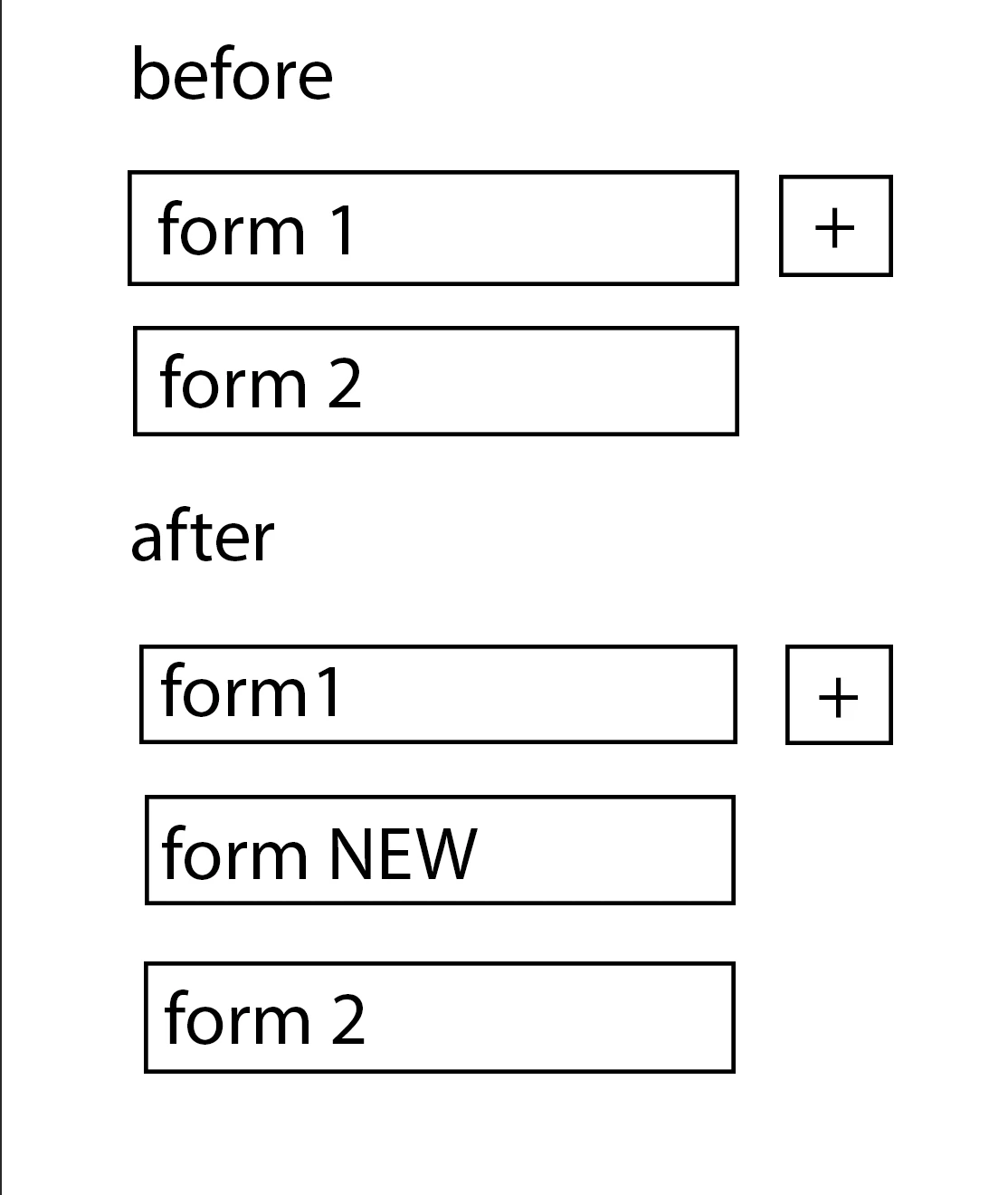 but I need this to be added in the middle of an existing form, so the one on the bottom should move to create the space where will appears the new one.