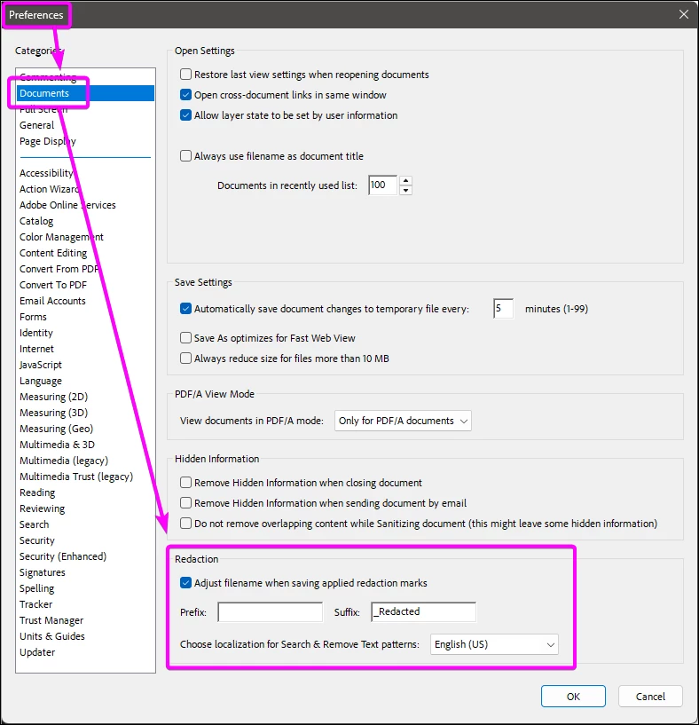 When a document is redacted, by default Acrobat will prompt you to save a copy with the "redacted" suffix.
