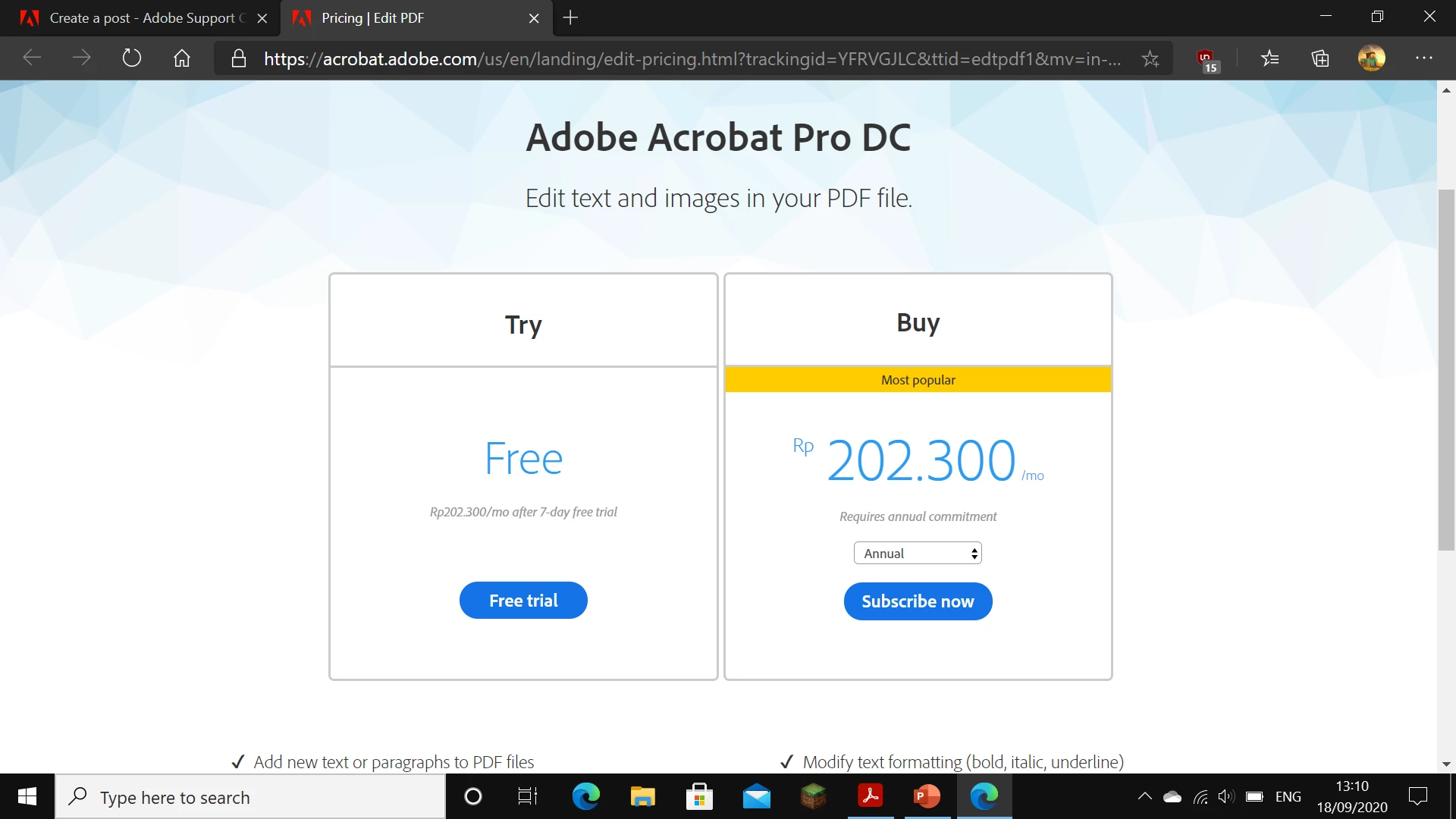 Can yiu make Adobe Acrobat Reader DC can edit, create and export pdf without Pro?