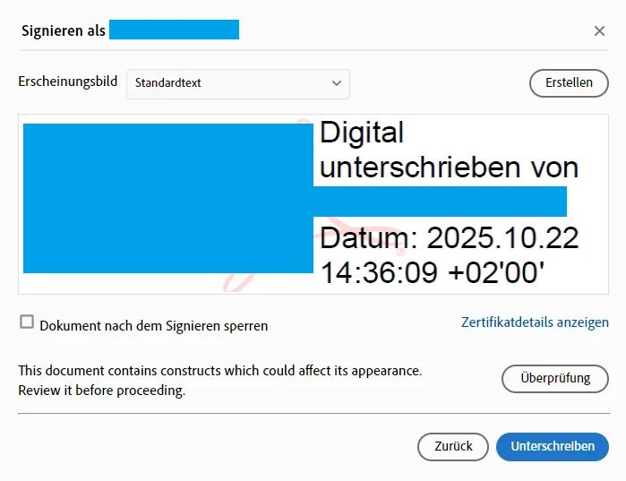 Hallo zusammen, ich muss recht häufig in Adobe Acrobat 2024 (Classic) mit digitaler ID PDF-Dateien signieren und ärgere mich über die Fülle der unnötigen Dialogfelder, die durch immer die gleichen Klick-Aktionen meine Zeit stehlen.