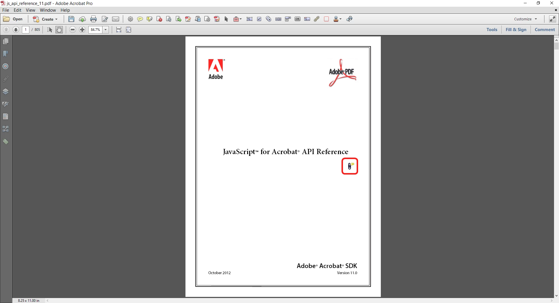 Double-click the page using this tool and then select the file you want to attach. It will look like this (red square added by me):