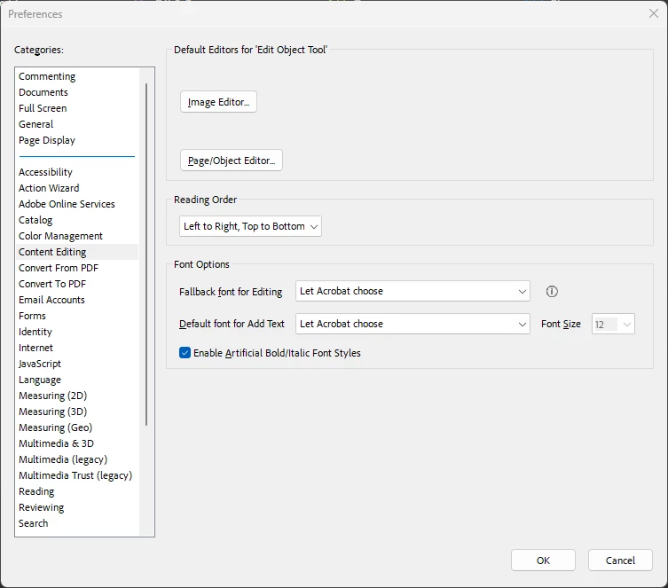 I am working with a user who is missing the "Enable auto adjust layout by default" setting in Preferences > Content Editing per the picture below. The user is using the new Acrobat UI and is on the most up to date version of Acrobat (25.001.20844)