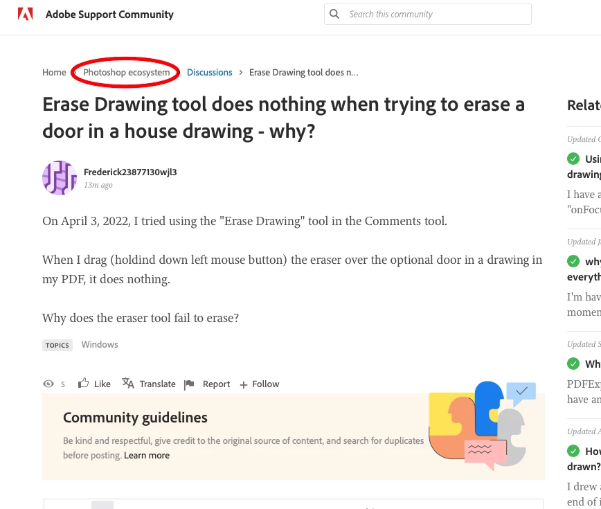 On April 3, 2022, I tried using the "Erase Drawing" tool in the Comments tool.