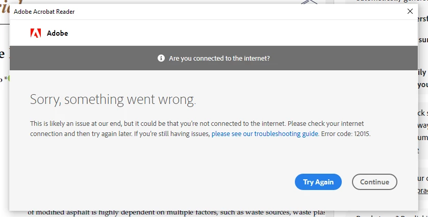 Hi, i want to use the AI Assistant and i need to enter GET STARTED or sign in first. but there is an error 12015 "Are you connected to the internet?". why is it happened since i was connected to my personal hotspot and has full bar line. How to solve it since i need to use Ai Assistant.