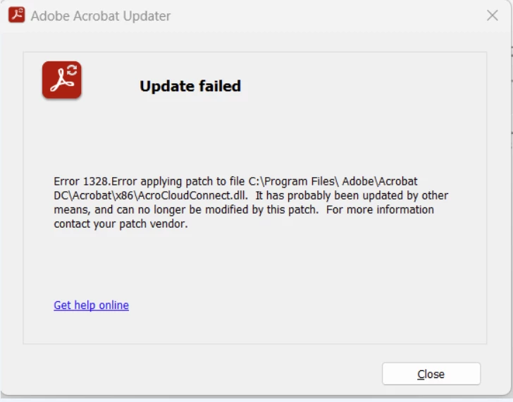A lot of our end users that have Adobe subscriptions are all getting this error. They state they have occasional issues saving pdf's and printing them, as well as sign-in issues. It seems to be an issue with auto updating. I have repaired the installation and the issues seem to temporarily resolve then persist again. Please advise. Thank you
