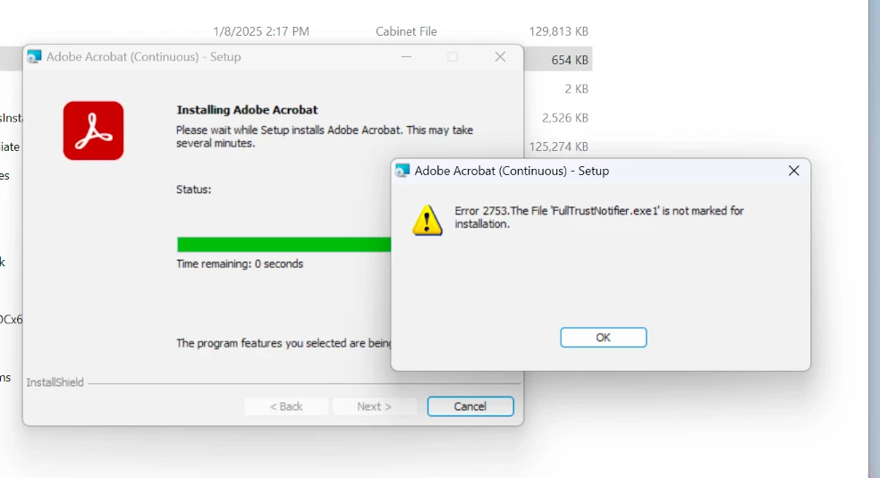 Error 2753: The File 'FullTrustNotifier.exe1' is not marked for installation