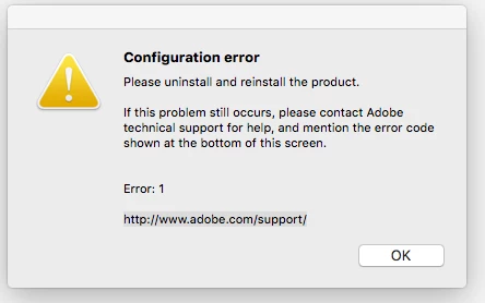 Instructions say uninstall and reinstall. Did that using the creative cloud app. It looks like it works... the "Install" changes to "Open"  but the result if trying to open the Acrobat application is this dialog:  Tried twice.  Same problem.