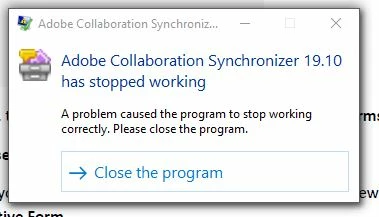 Error Message: Adobe Collaboration Synchronizer 19.10 has stopped working