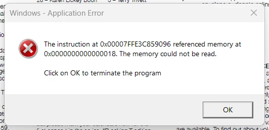 Error Message On Program Start