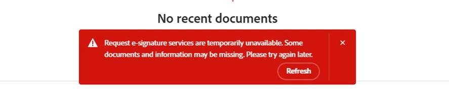 When I log on to our business adobe I am unable to access E-sign. I am just getting the error below?