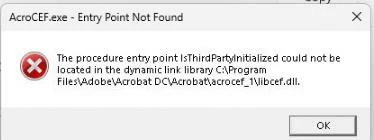 The procedure entry point IsThirdPartyInitialized could not be located in the dynamic link library libcef.dll
