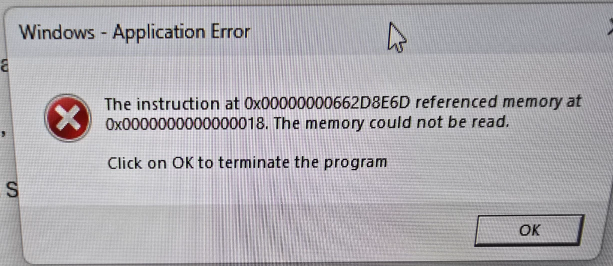 Error when reading pdfs - Windows application error - referenced memory couldn't be read