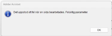 The error message is in swedish so here is the translation. "There was an error while processing a page. incorrect parameter."