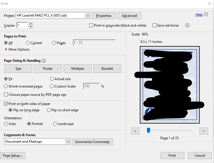 Have tried restarting computer, printing as image, and variations on portrait/landscape. No success.