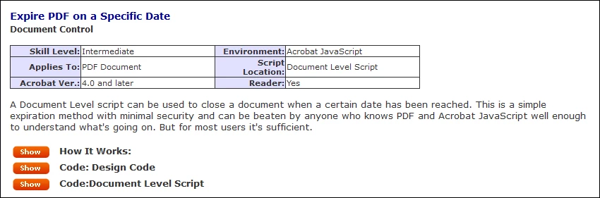 Hello everyone, is it possible to use JavaScript to store an expiration date for a PDF, i.e. that it can no longer be opened after this date has expired? I would be very grateful for your help.