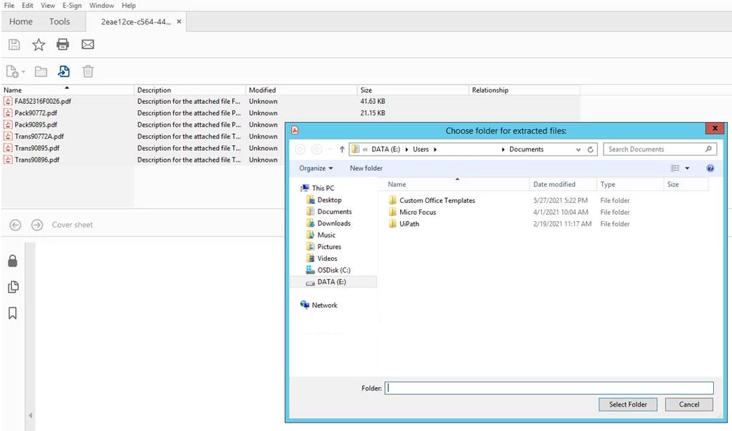 We are noticing inconsistent user interfaces when extracting files from a PDF Portfolio. For example, I see a "Choose Folder for Extracted Files" window: