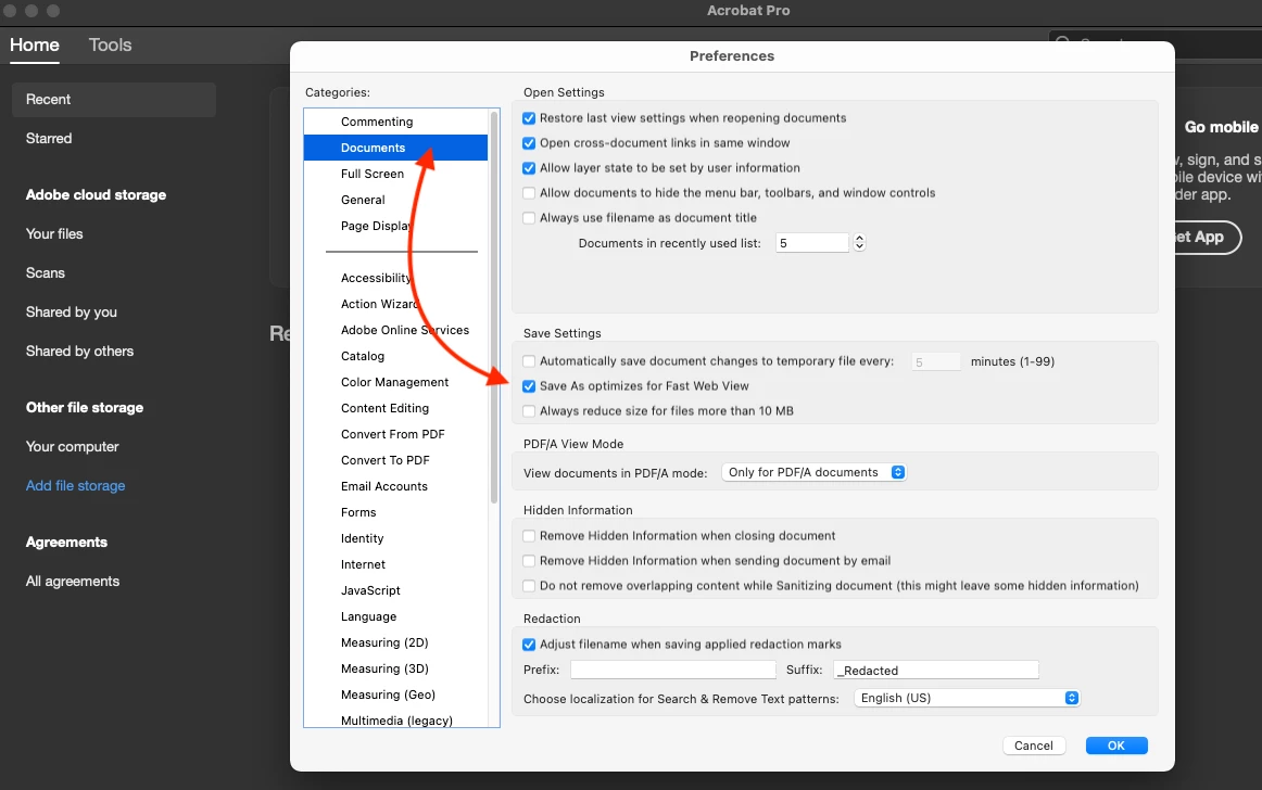 Fast Web View setting for Large PDFs changes from Yes to No after saving