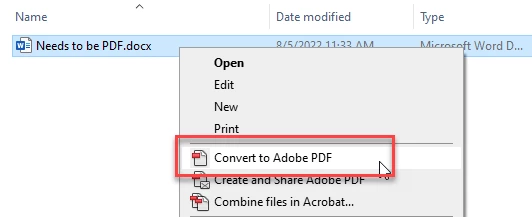 If I right click on a Word document and select Convert to PDF (using Adobe Acrobat Pro DC), it always pulls up some different file location? Does anyone know if it's possible to default to the folder you're currently in?