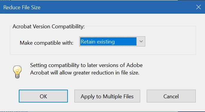 "File => Reduce File Size" option disappears after reinstalling Adobe Acrobat Pro DC
