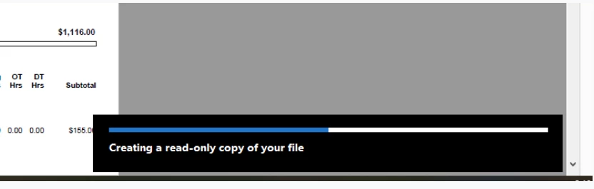 After I hit save, the below pops up in the bottom right corner and sits that way for several minutes. It’s currently been on my screen this way for 10 minutes showing halfway complete.