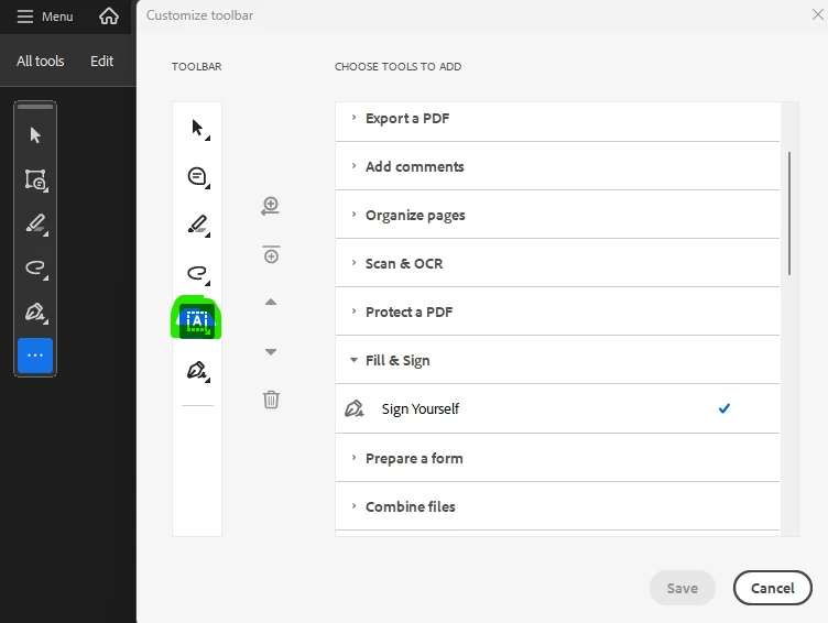 "Fill in form fields" button not available in the toolbar