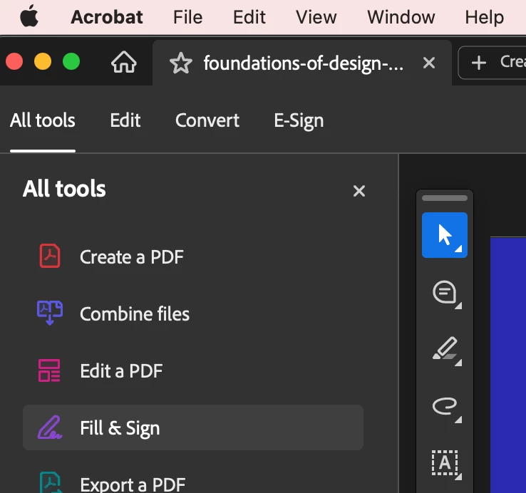 I frequently work with documents and have noticed that the Fill & Sign tool has completely disappeared from the Tools menu. All attempts to bring it back have been unsuccessful (including trying to change the language after reading the Adobe chat, but even this "voodoo dance" didn't work). It's unclear how to restore such an important tool?