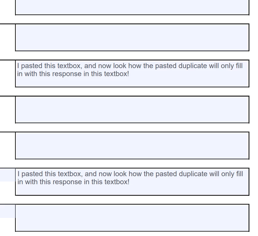 BUT... I did a test run to fill out the form, and turns out, one response in one box will fill out every other box with the exact same response. I don't want this at all.