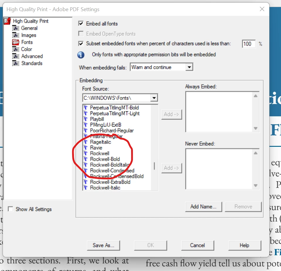 Here's another way to export a PDF from MS Word and designate that all fonts are embedded.