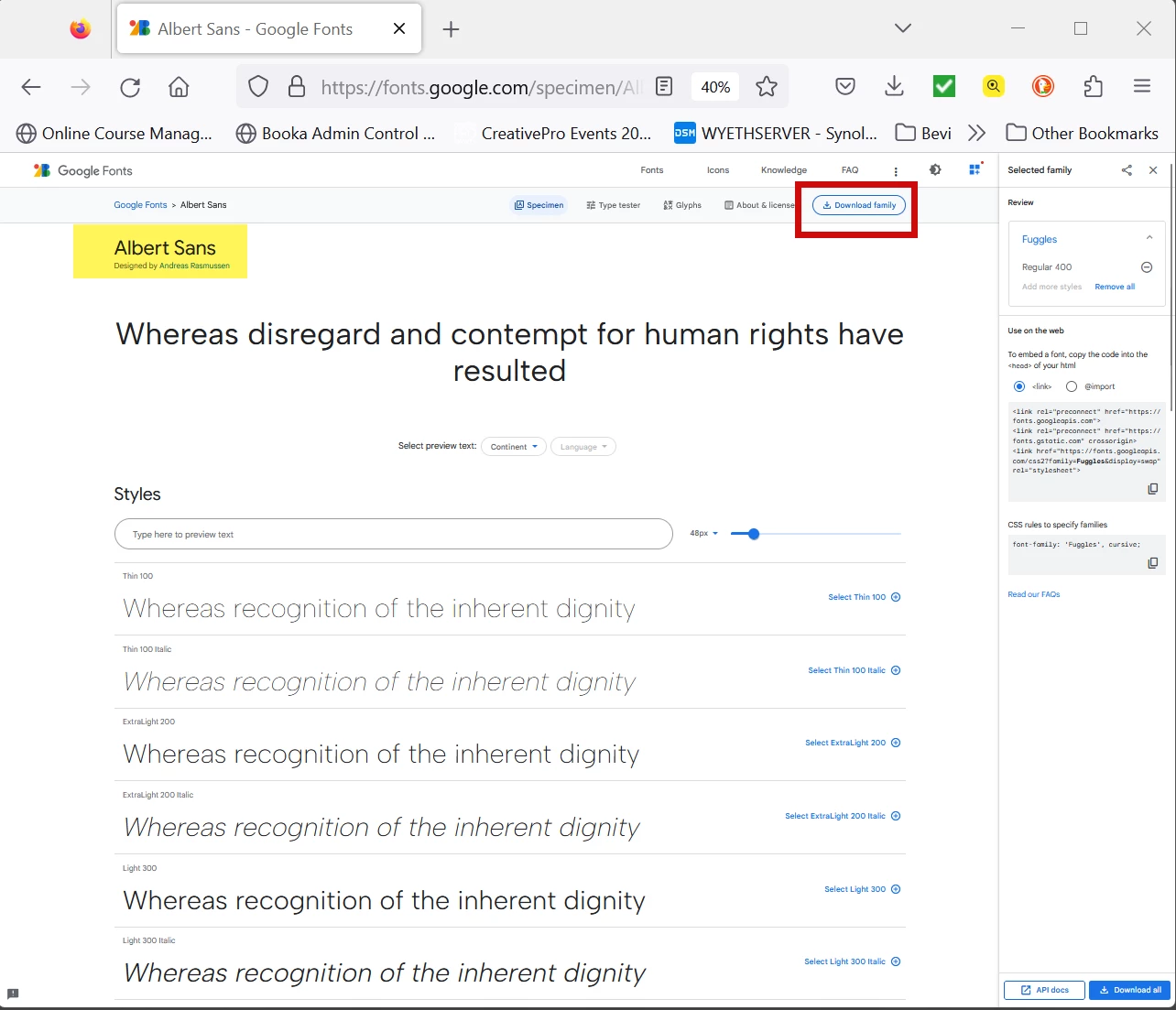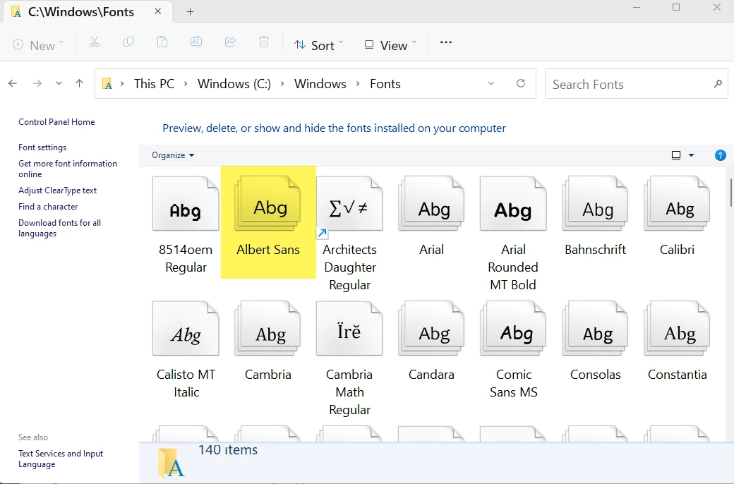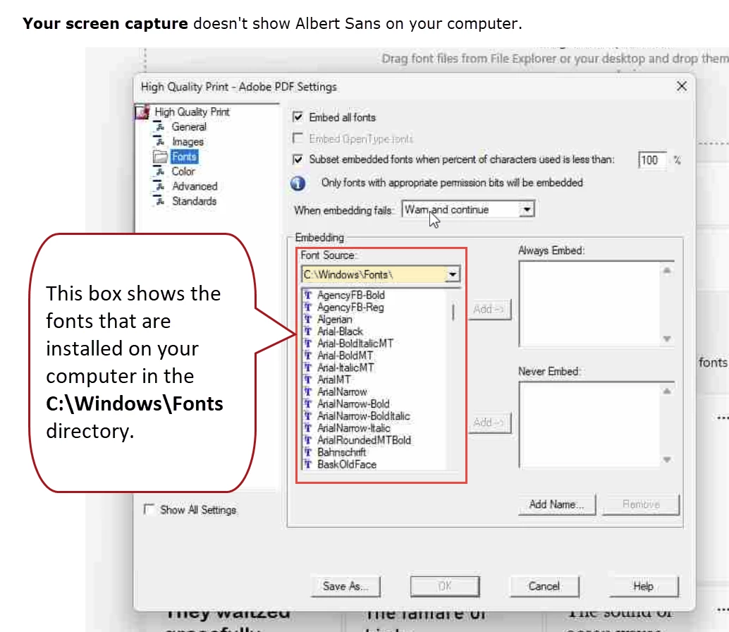 Having an issue with Albert-Sans font. The font is installed on the Windows 11 laptop, but doens't show up in Adobe. When printing to PDF via Acrobat from PowerPoint the weight of the font it wrong. It is not showing up in the list of fonts not sure that is the issue.