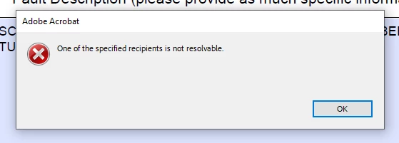 form submit -one of the specified recipients not resolvable