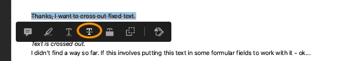 Wie kann man in einem pdf.-Dokument Text per Mausklick wegstreichen? Es geht um ein Formular, in dem zum einen Textfelder ausgefüllt werden und zum anderen fester Text gegebenenfalls per Mausklick gestrichen werden soll. Danke für die Hilfe.