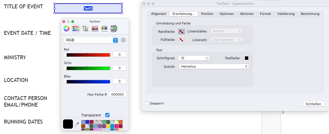 CornelaParticipantForum|Forum|1 year agoApril 20, 2024QuestionFormular Textfeld RahmenForum|Forum|1 year agoApril 20, 20241 reply408 viewsIch schaffe es leider nicht beim Erstellen eines Formulars die Eigenschaft des Textfeld zu ändern.Wenn ich auf ”Umrandung und Farbe” klicke, kommt zwar die Farbauswahl, ich kann aber nichts auswählen. Weiß jemand Rat? Vielen Dank im Voraus !PDF forms