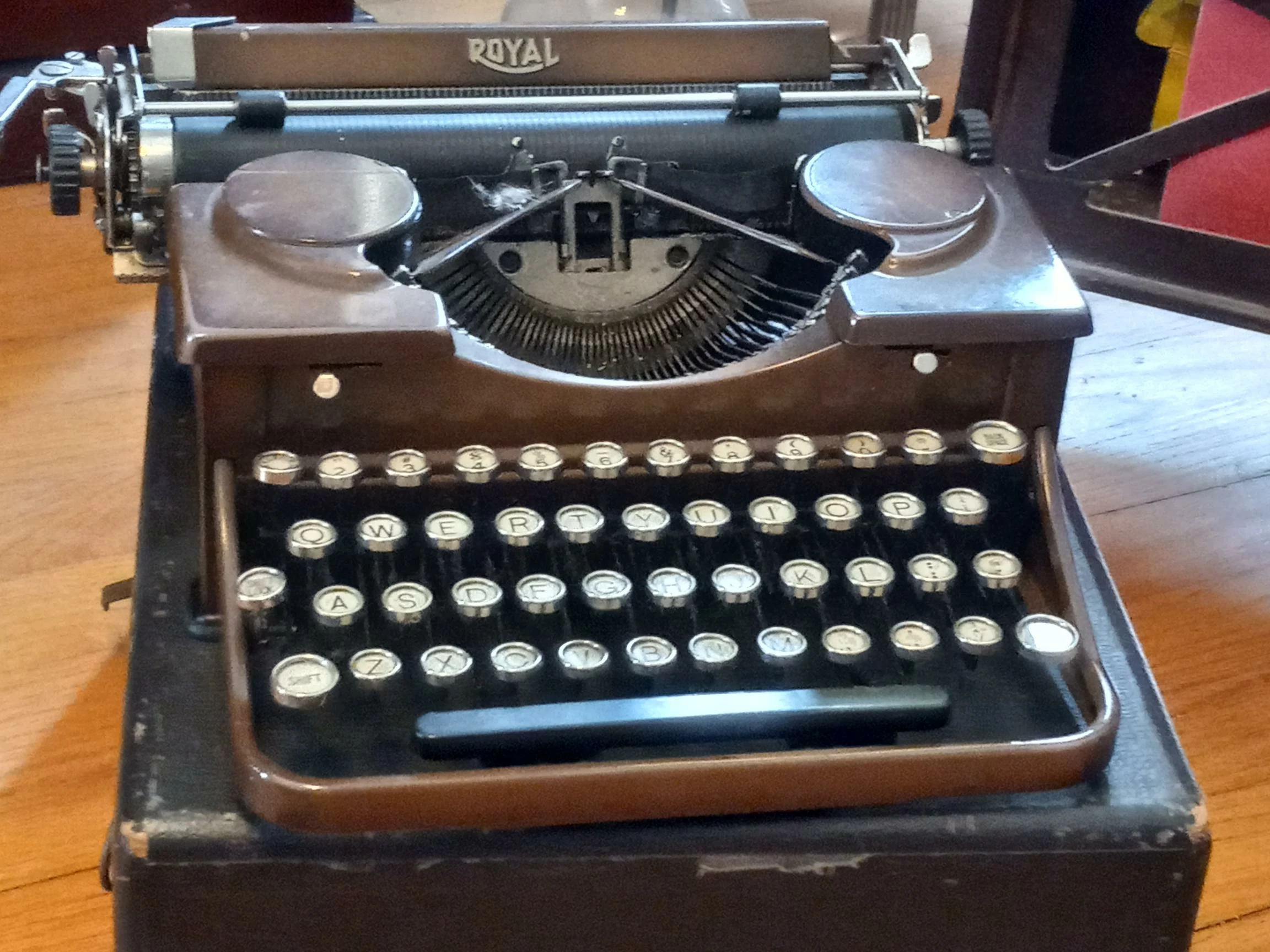 The pictures are the Royal typewriter which we still own (but do not use!). And the first and only existing page of the original manuscript typed on the Royal typewriter.