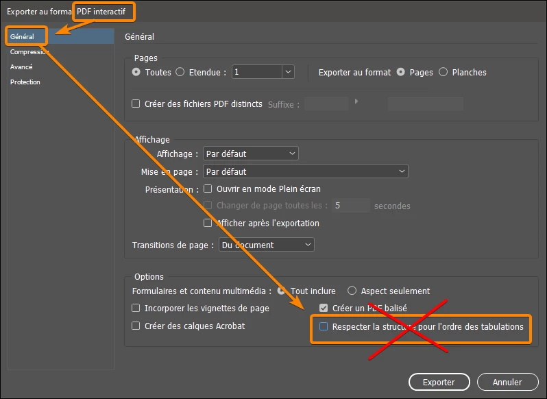 - when exporting to PDF from InDesign you should not check this option (I don't have InDesign in English but the location is the same):
