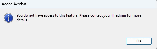 Get prompts: You don't have access to this feature. Please contact your IT admin for more details. When edit PDF with Adobe Acrobat Pro