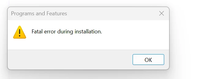 I see an option to either change or uninstall. Since unistall isnt working, I tried to check for option in change. But whne I hit change I get error "Fatal error during installtion"