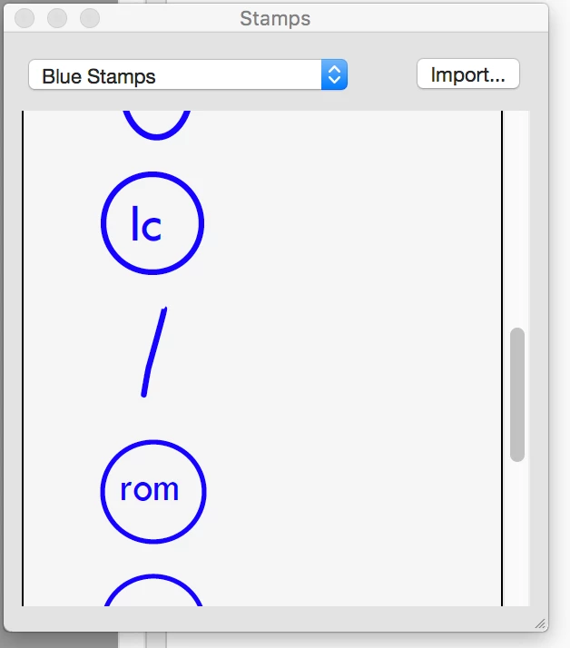 I have a stamp "collection" that contains 14 images running down vertically; to use them I just click and drag into a PDF.