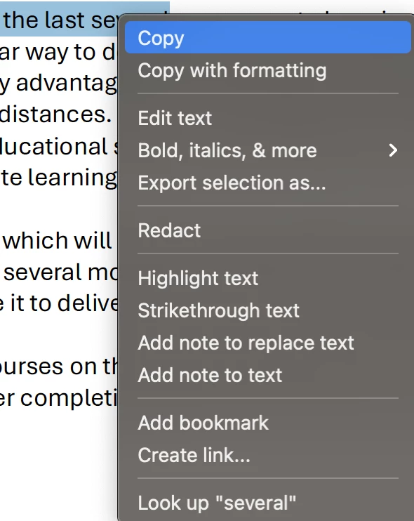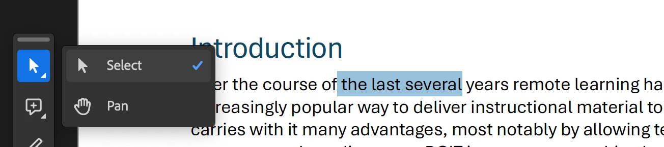 When I select a body of text, using the selection tool of Acrobat