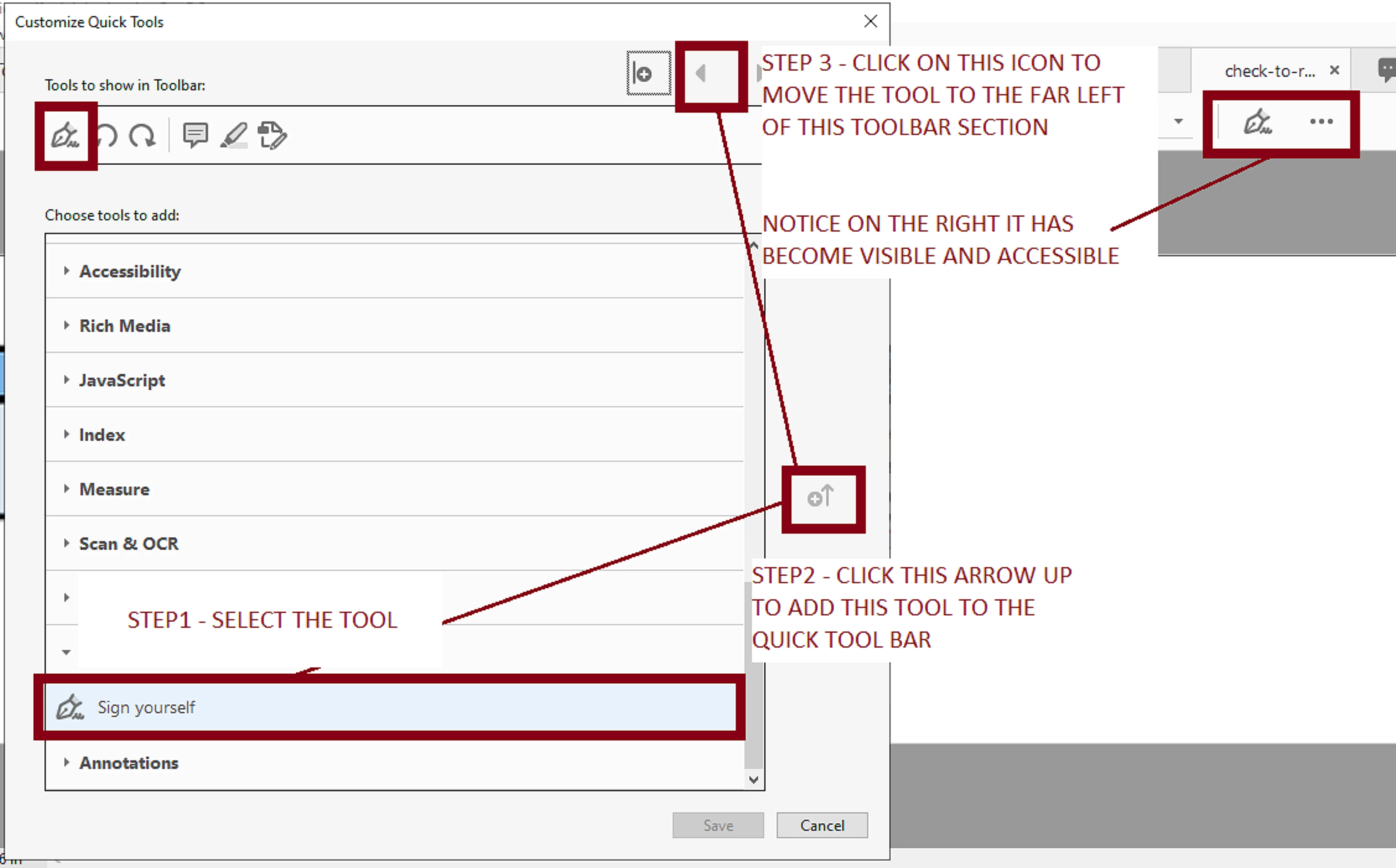 I sign lot of document then I would like to add the "sign" icon on my personnal quick tool bar because I use it often.