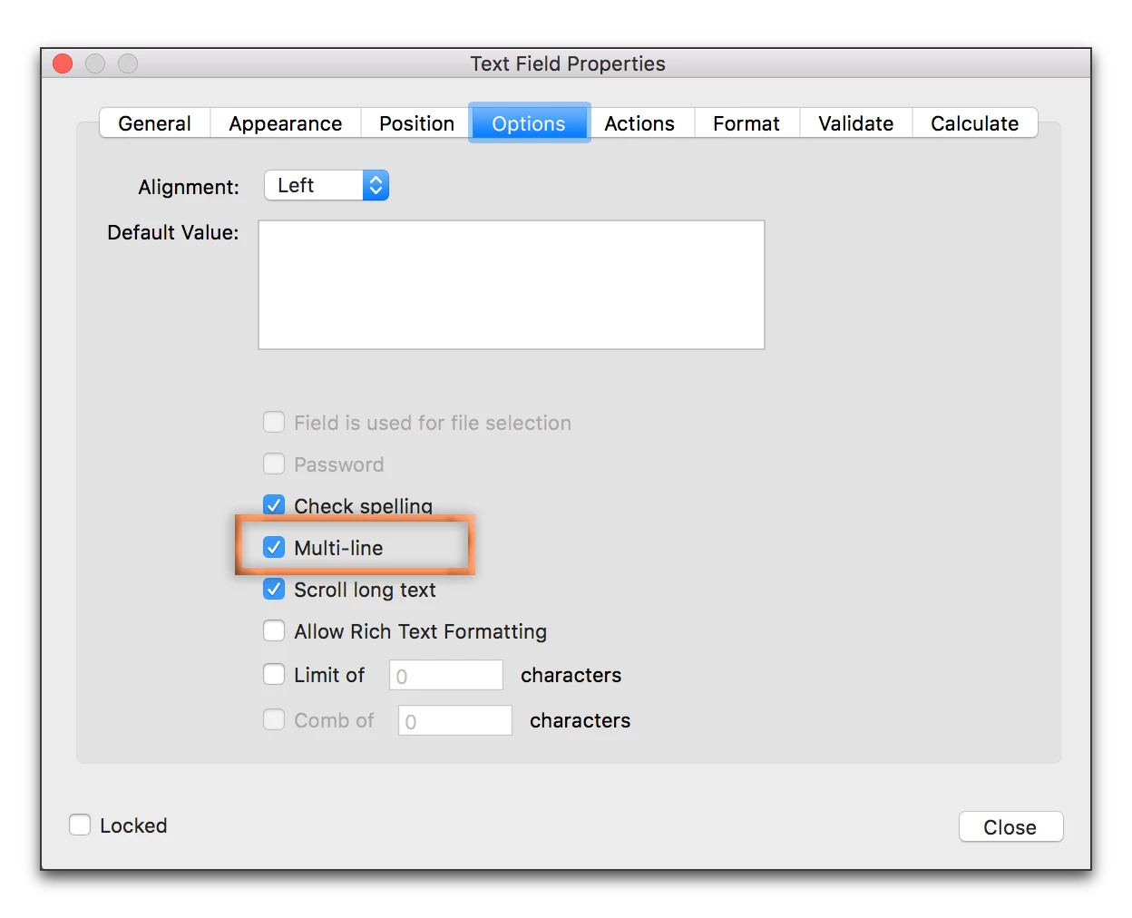 I scanned a generc Monthly Rental Agreement to pdf and entered text fields to be completed as needed for my rental properties. One section allows for additional terms and comments. I can't seem to be able to create on large text field that allows me to type in a number of additional items; I can only enter multiple text fields for each item but them the font is larger or smaller depending on the amount of information in that line. I would like to have one large text field that allows me to enumerate additional items but creating a large text field creates large fonts to match....is there a solution?? thanxzz