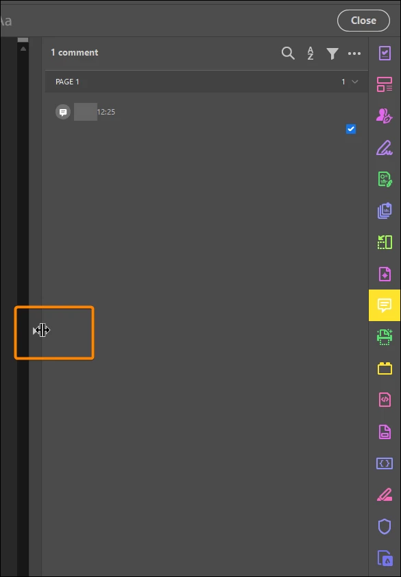How do I enlarge the too (right hand) pane in adobe acrobat DC?