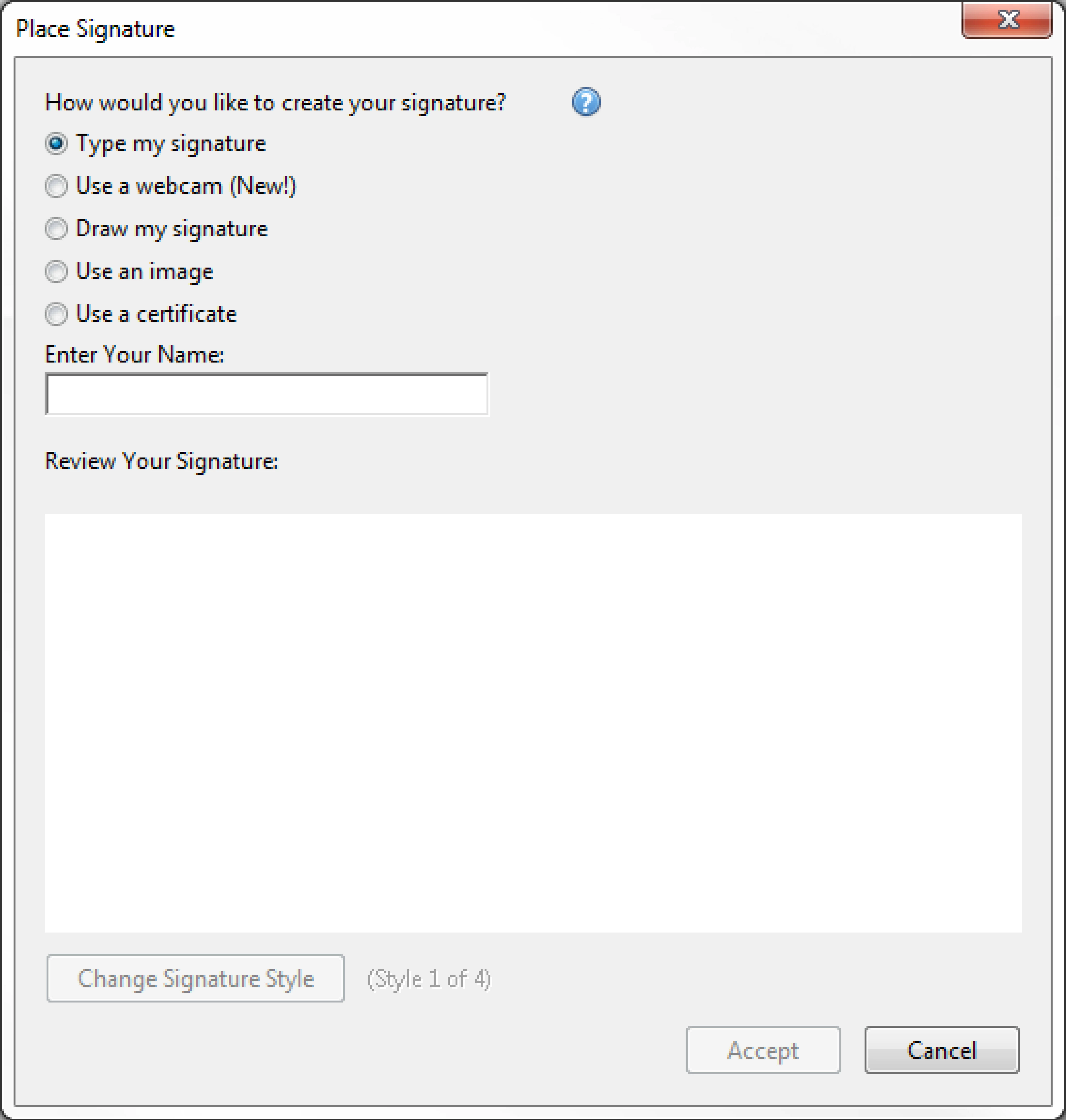 Did anyone ever get Acrobat XI to stop offering a digital signature and switch to a plain electronic signature? I saw the directions, but my version is not showing a drop down box next to Place Signature, so I'm having trouble. I only want to place electronic signatures.
