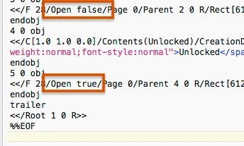 There's no need to edit the source code of the PDF. It can be done using a simple script in Acrobat.