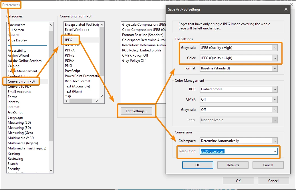 How do I output a few PDF pages at 72dpi? I have 12 pages that were created in Illustrator on 12 artboards, which are then converted to a PDF. I open the PDF in Acrobat Pro and Export ... To Image. I now have 12 jpegs at 200 dpi. I could change each one into 72dpi in Photoshop but is there an easier way by changing the resolution in Illustrator or Acrobat so that I don't have to use Photoshop?
