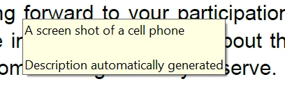 How do I remove the "A screen shot of a cell phone Description generated automatically" text box?