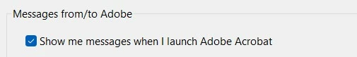 the 'Show me messages when I launch Adobe Acrobat' is checked (even though I unchecked it as above).