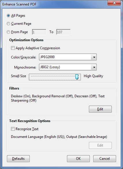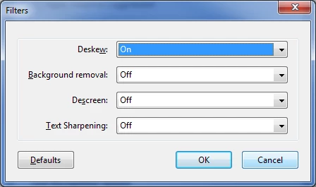 Now you can adjust the filters. One of the available filters is "Deskew", which will straighten the scanned pages.
