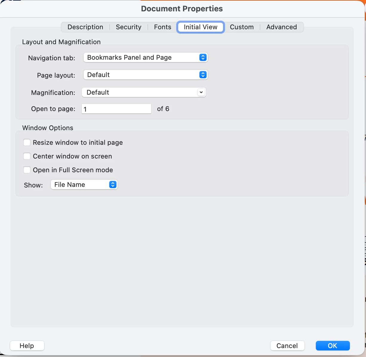How do I turn OFF the setting that automatically displays bookmarks when I open a file?